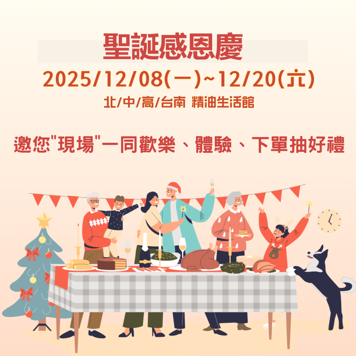 感謝您一整年的支持!全台精油生活館將於 12/08 至 12/20 盛大舉辦「聖誕感恩慶」。活動結合濃厚節慶氛圍與年度新品,邀您親身試飲 VMG+ 與體驗 IKISE 卓越亮點,凝聚團隊力量。現場備有多重互動好禮,參與打卡、問答即贈送 MetaPWR™。更推出「單單有獎」回饋:單筆訂單滿 100PV 即享抽獎資格(以此類推),誠摯邀請您蒞臨,共享這份豐盛的聖誕祝福!