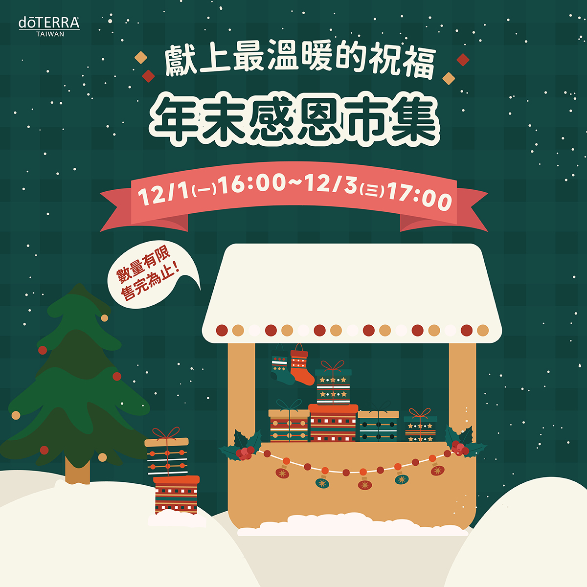 多特瑞「年末感恩市集」,將於 12/1(一)16:00 至 12/3(三)17:00 溫馨開啟!這場今年度最溫暖的限時盛會,讓您以最優惠的價格,將美好純粹的祝福帶回家。本活動限網路訂購,只有三天,數量有限,售完為止。把握這個充滿感恩氣息的祝福,讓療癒力量,點綴您的歲末時光!