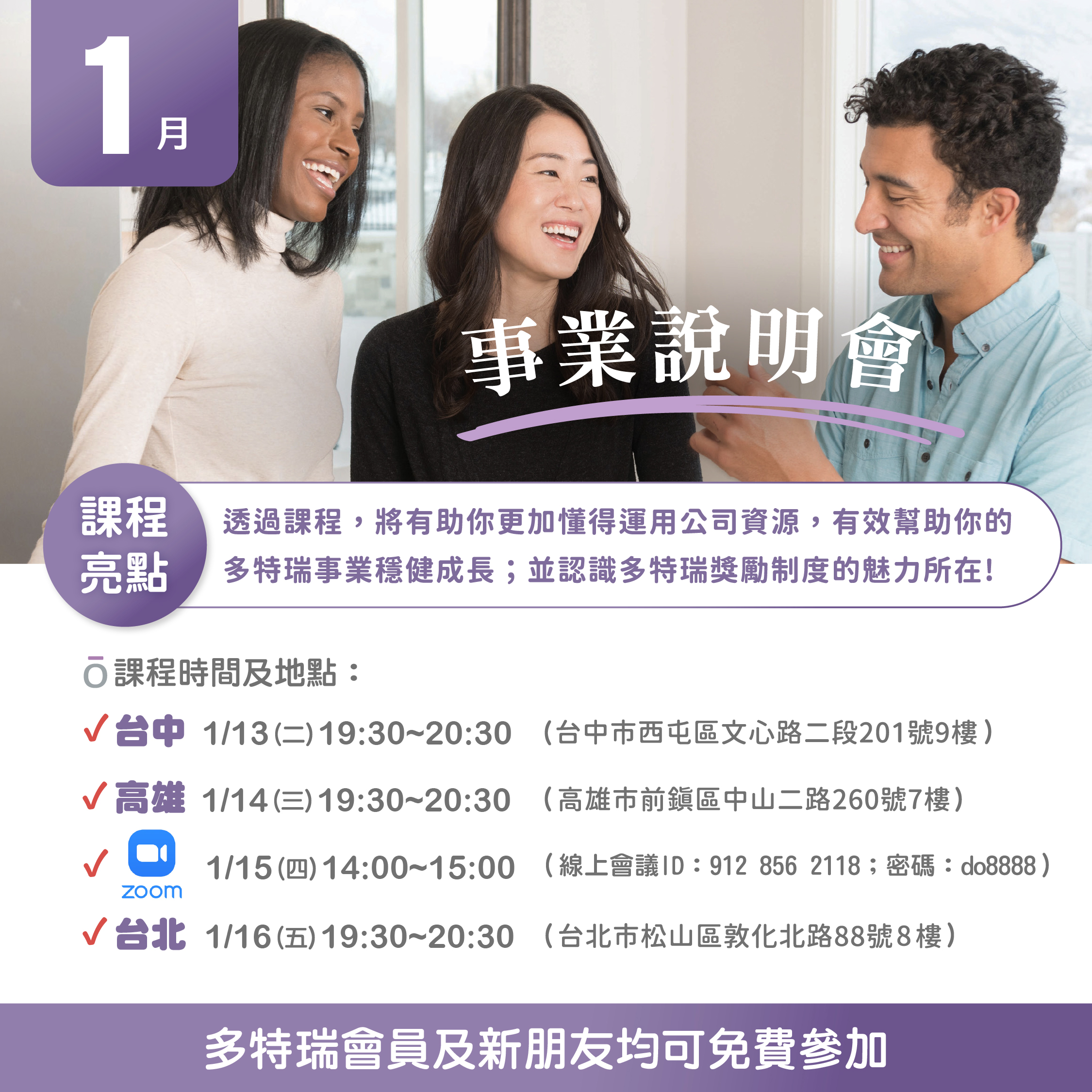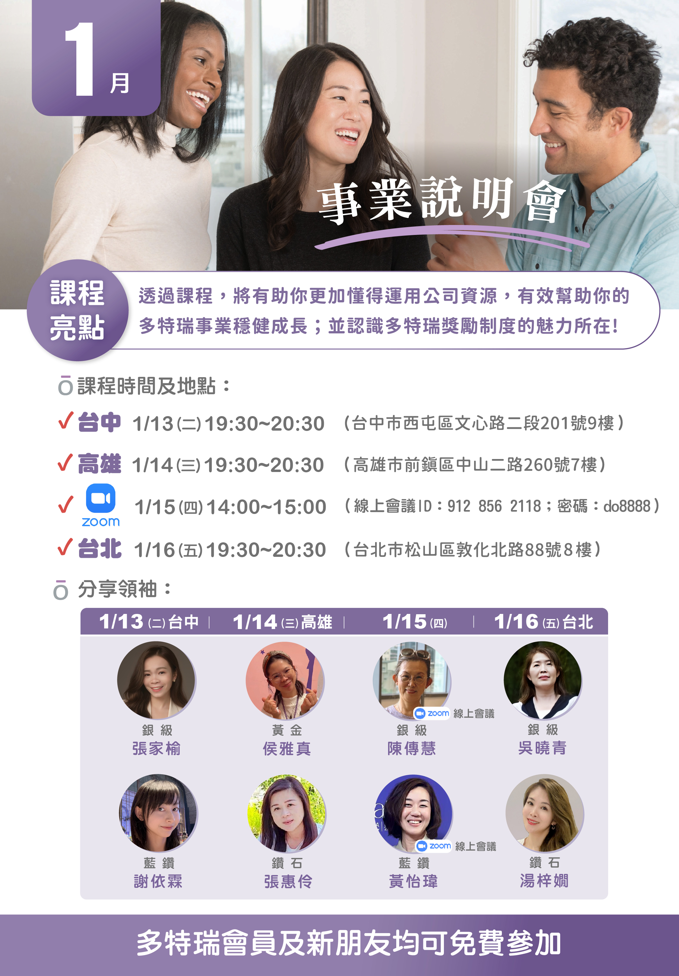月,我們規劃北、中、南及線上的事業說明會,帶您從「愛用」到「經營」,一步步啟動專屬於您的健康事業藍圖。誠摯邀請您預留時間,邀約夥伴一起參與這個關鍵起點!